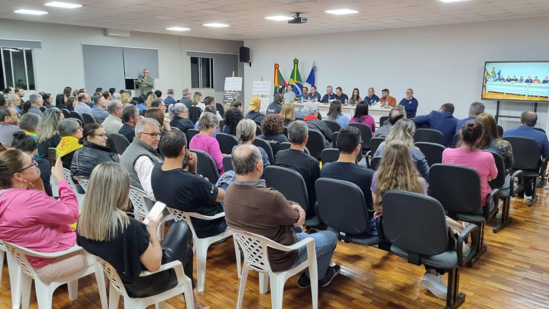 Ao final pronunciaram-se os advogados representantes do Cpers, dos professores e do município colocando os fatos e contrapontos a partir da lei. Também fizeram uso da palavra o prefeito Ulisses Cechin, os vereadores Vilmar Inácio Pellin, Alcir Stefani, Silmara Pereira Mattos, Lenoir Borges, Valdecir Schenatto, Belchyor Teston e para o encerramento o presidente Marcelo Corso.