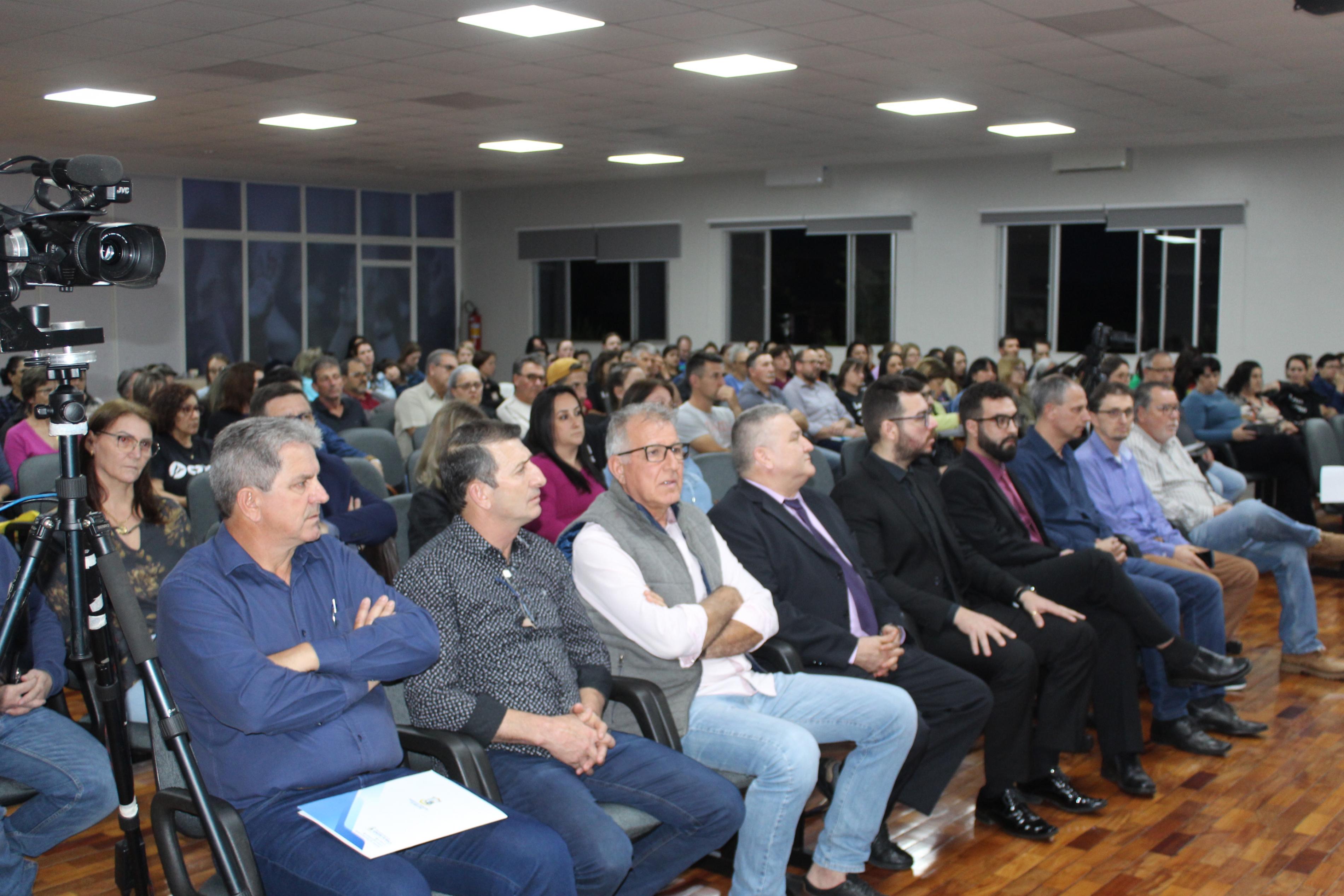 Na noite de terça-feira, 14, a Câmara de Vereadores de Ibiaçá promoveu no Salão Nobre do Centro Administrativo de Ibiaçá uma audiência pública para tratar sobre o tema da valorização do magistério municipal. Estiveram presentes todos os vereadores que compõe a Câmara de Ibiaçá, do Poder Executivo, o prefeito Ulisses Cechin e o vice-prefeito Jones Cechin, representantes da Avenor, de deputados, professores e pais.
