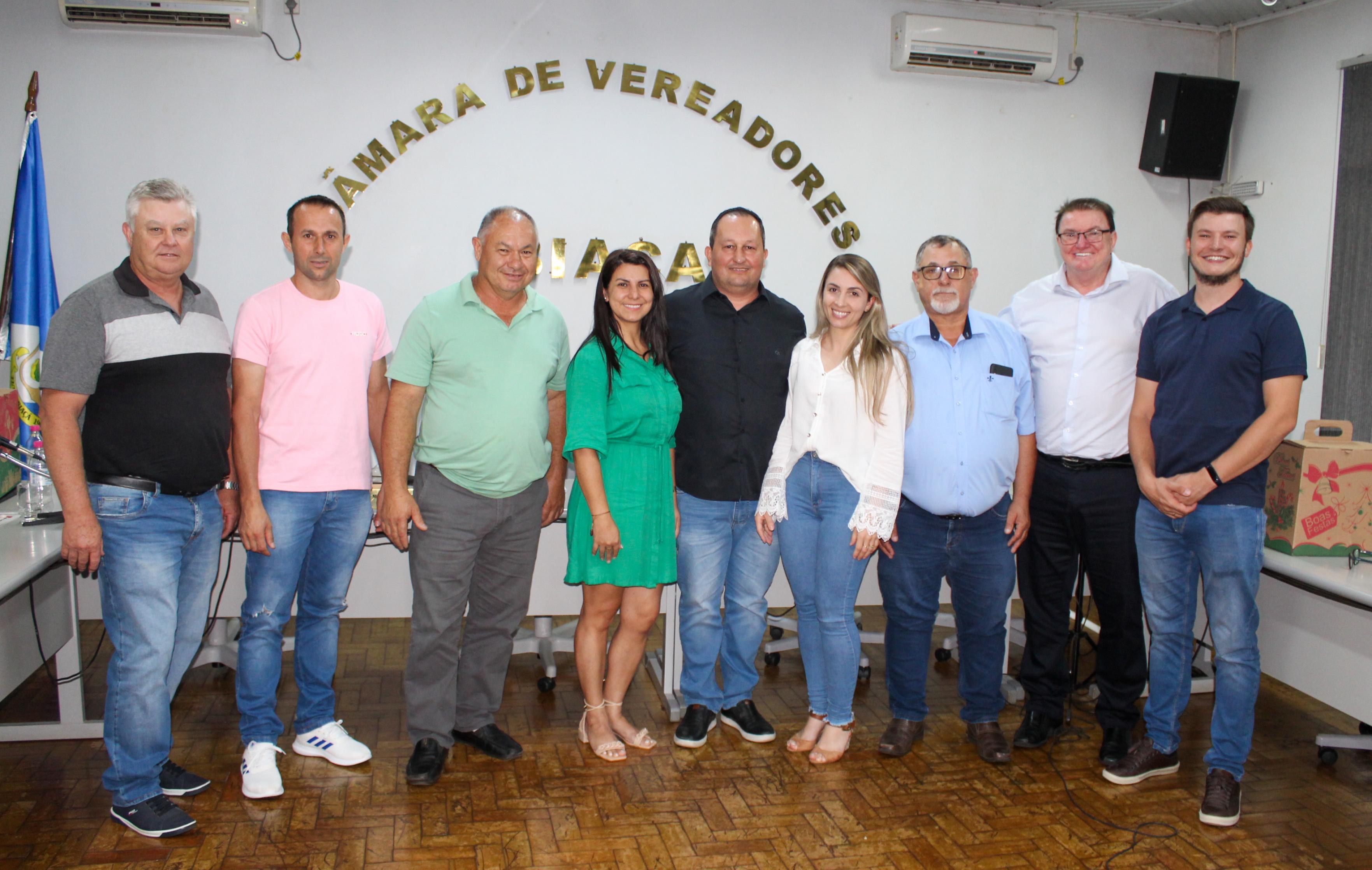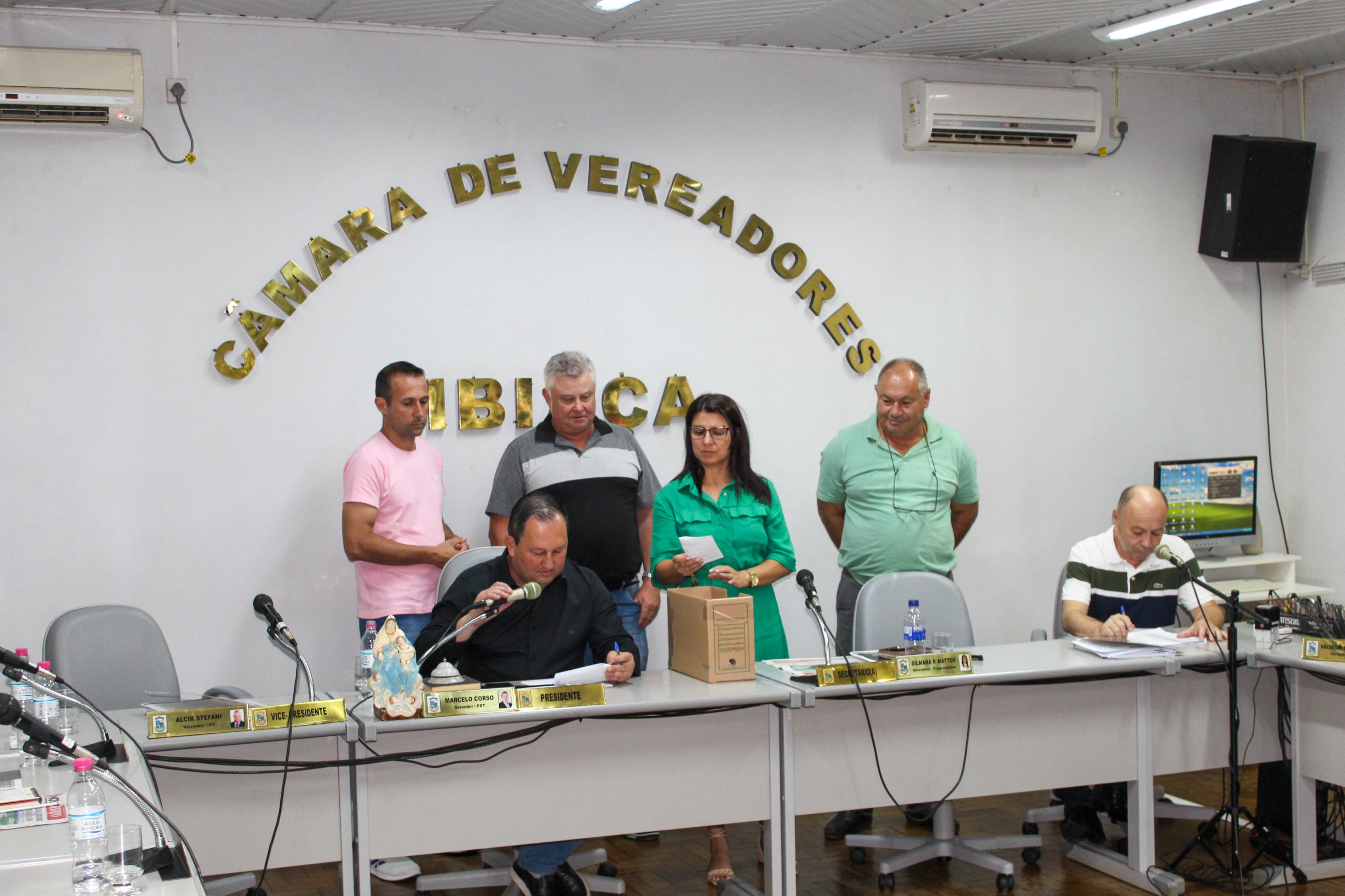 Na Sessão Ordinária da Câmara de Vereadores de Ibiaçá, realizada na quarta-feira (20), foram apreciados e votados sete Projetos de Lei (PL) e dois Pedidos de Informação. Conduzida pelo presidente Marcelo Corso, os vereadores ao final elegeram a nova Mesa Diretora para o ano de 2024. Foi eleita Diana Germiniani como presidente, Alcir Stefani vice-presidente e Edimar Corso secretário. Também, foram indicados os nomes para a eleição da Comissão Única de Pareceres que acontecerá no início do próximo ano.