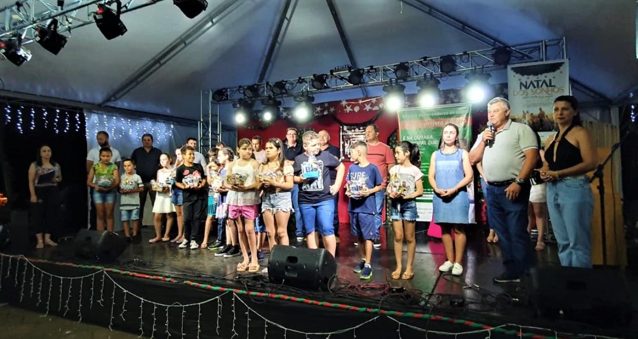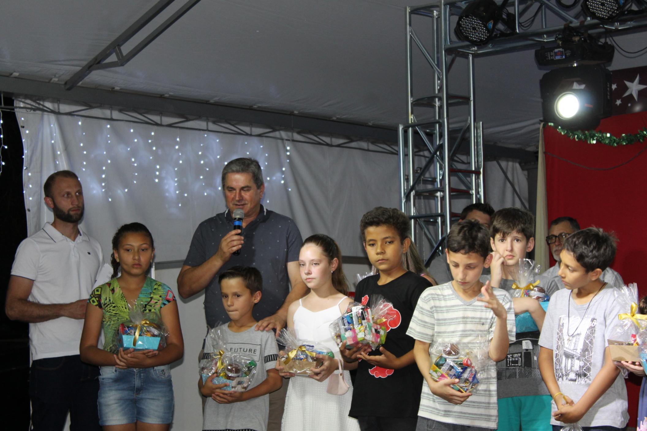 O presidente Alcir Stefani, acompanhado da mesa diretora da Câmara, realizou a entrega do troféu da turma para a representante Ananda Bonfante Duarte e para a escola foi entregue à diretora. Os vereadores entregaram uma cesta de doces para cada uma das crianças participantes.